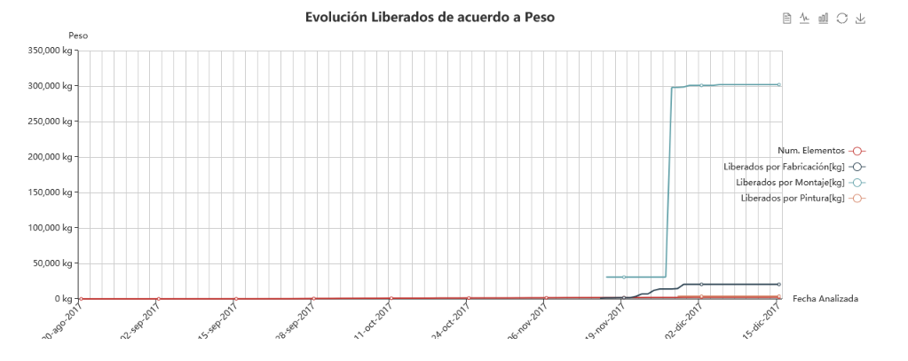 Fig 351 Extracto de Pantalla mostrando un gráfico del tipo "Elementos (Peso)" para una determinada Orden de Servicio con los parámetros seleccionados.