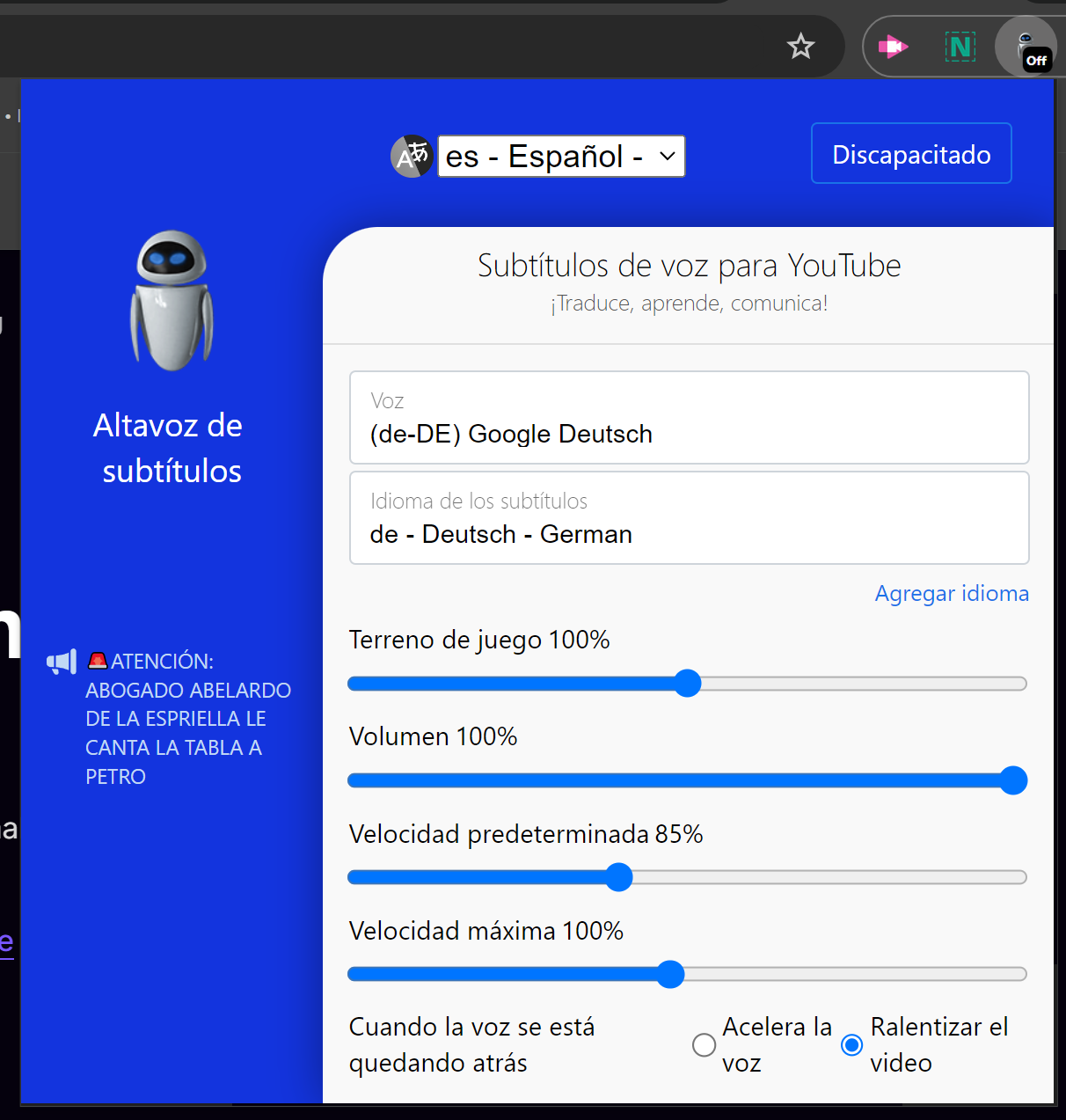 •Youtube speak subtitle (emplea los subtítulos pero también los usa para hablar
