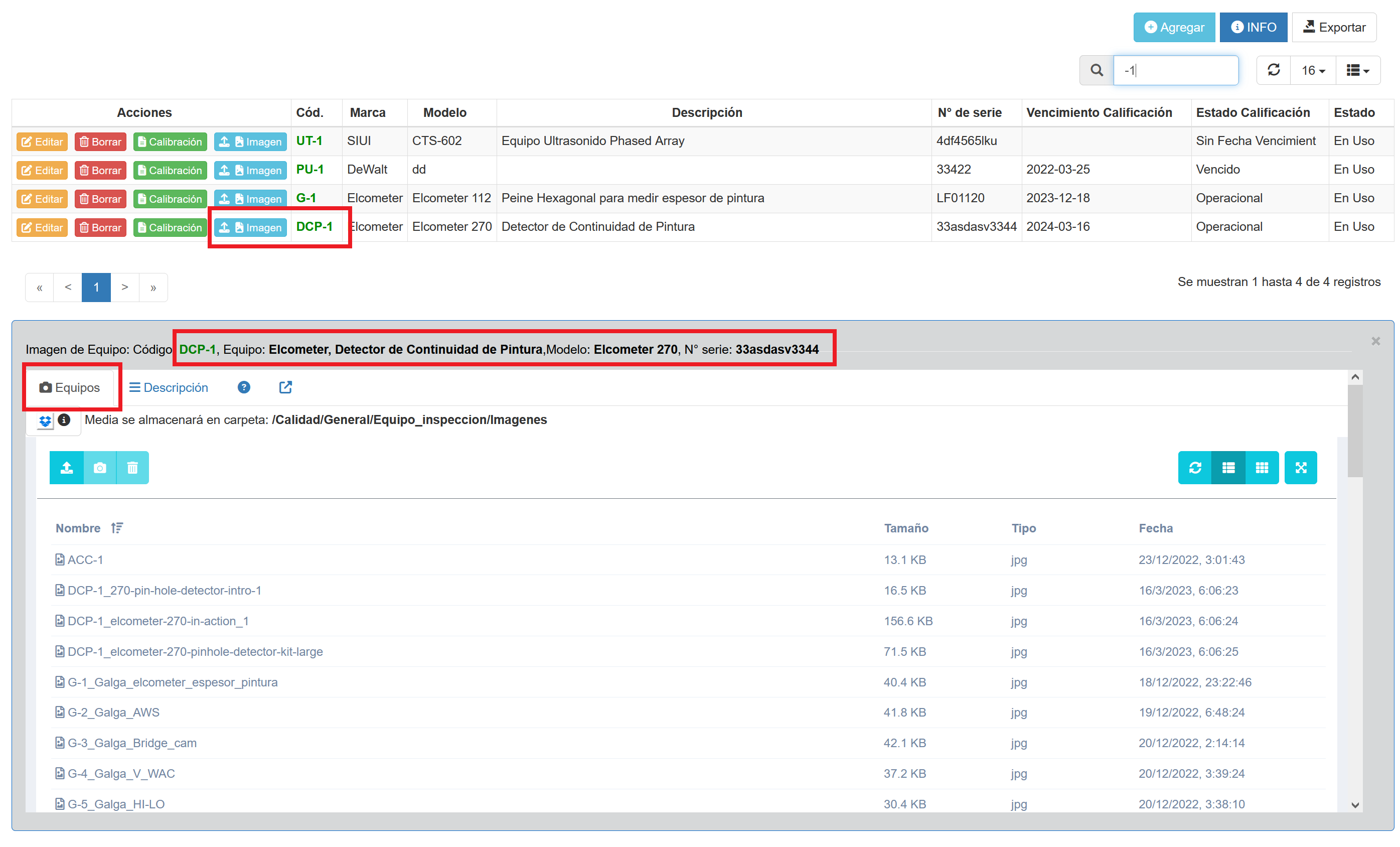 Se activa el módulo de carga de multimedia y muestra las imágenes para equipos. |