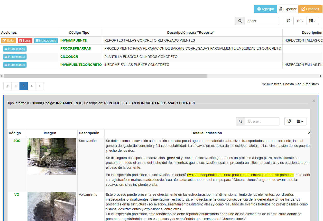 •Una vez definidas las indicaciones se asocia al reporte en la pestaña "Tipos Infomes - Indicaciones" . Más detalles, ver Indicaciones
