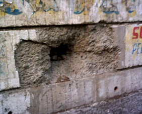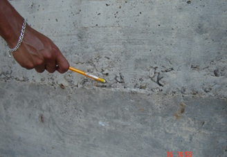 Fig 1282 Segregación en un muro (Vía Simití – Cerro de Burgos, Bolívar, 2005) . |