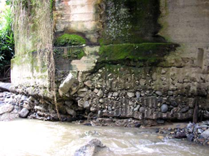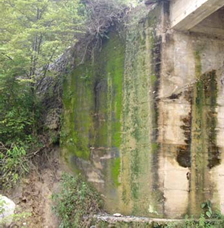 Fig 1287 Presencia de eflorescencias en el estribo del puente. (Puente Río Meldar, Tolima 2006) |