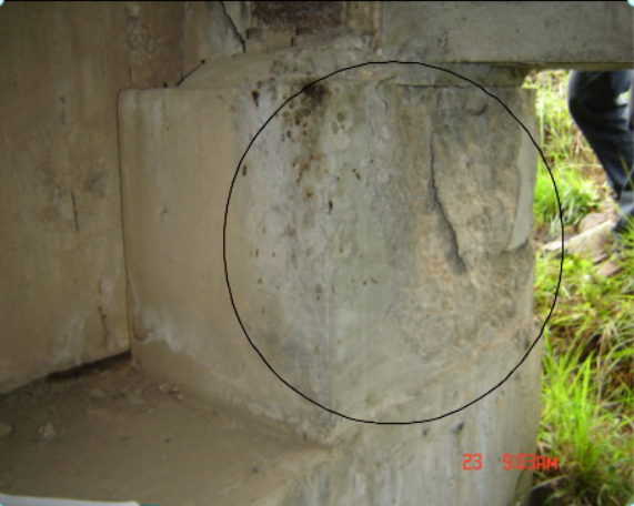 Fig 1278 Fracturas por aplastamiento en el pedestal. (Puente Cañada Profunda. Nariño, 2005) |