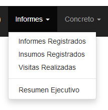 Las opciones de menú que se presentan cuando se selecciona "Informes" son las siguientes.