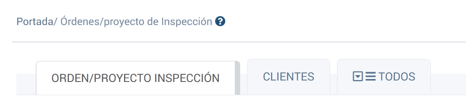 Listado de Ordenes/proyectos de Inspección que se estén manejando. Esta opción incluye unas pestañas con opciones adicionales. |