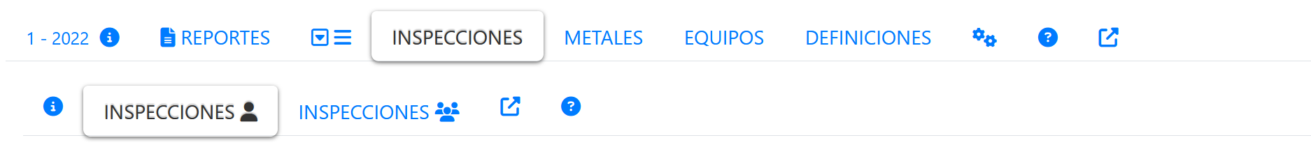 Al seleccionar la PESTAÑA Inspección, se mostrará una segundo nivel de PESTAÑAS que muestra las inspecciones del mismo inspector (permiso de lectura) y las de los otros, tal como se muestra en la siguiente imagen
