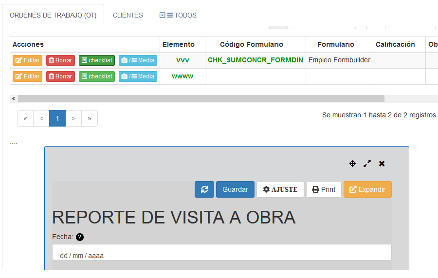 Los datos como tal están presentes en el formulario. El cual se activa al presionar el botón "checklist"