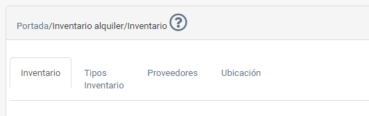 Una vez seleccionada la opción de menú Inventario aparece una pantalla con las siguientes PESTAÑAS de información tal como se muestra en la imagen a continuación