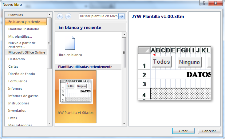 Fig 971 Excel 2010, ventana de plantillas personales.