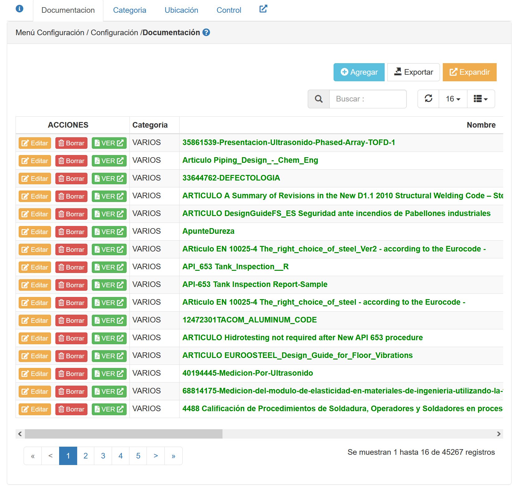 Muestra la información de la documentación registrada y clasificada, con posibilidad de visualizarla. Esta pestaña es la que se muestra en la imagen actual
