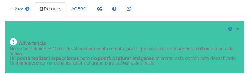 Si el sistema no está debidamente configurado, especialmente lo que se refiere la configuración de almacenamiento remoto, las funciones del módulo de captura de imágenes remoto no estarán activas y aparecerá un mensaje que impide guardarlo, tal como se muestra en la siguiente imagen