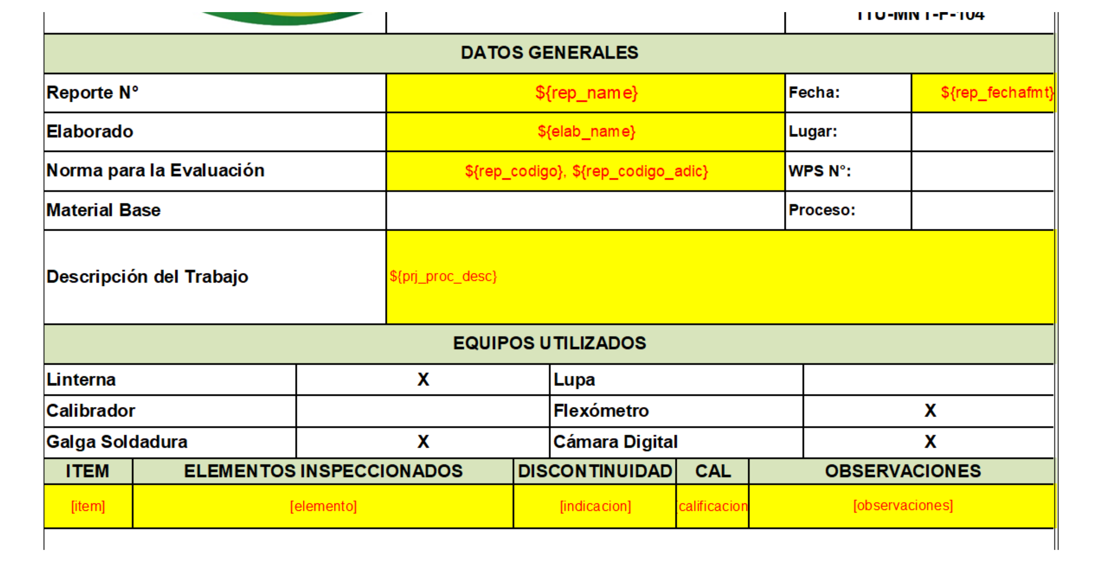Este mapa de Variables permite poder generar varios reportes al modificar su mapa de variable, tal como se muestra en la siguiente imagen.