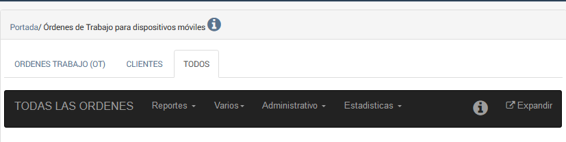 •Menú desplegable para TODAS las Ordenes de Servicio, contiene opciones generales del sistema para usuarios. Ver más detalles Todas las Ordenes