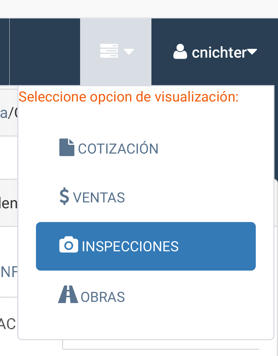 en la zona superior, se activa una ventana desplegable que permite la selección rápida de menú.