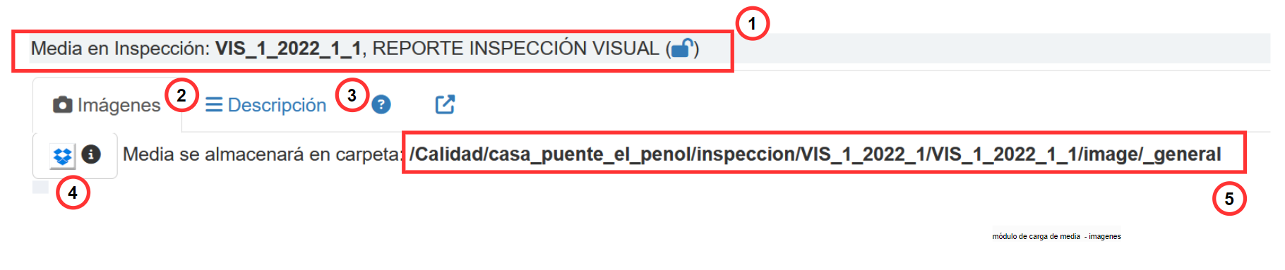 En el caso de las inspecciones en linea, donde normalmente se cargan imágenes, este módulo se denomina Módulo de Captura de imágenes y posee las siguientes características.