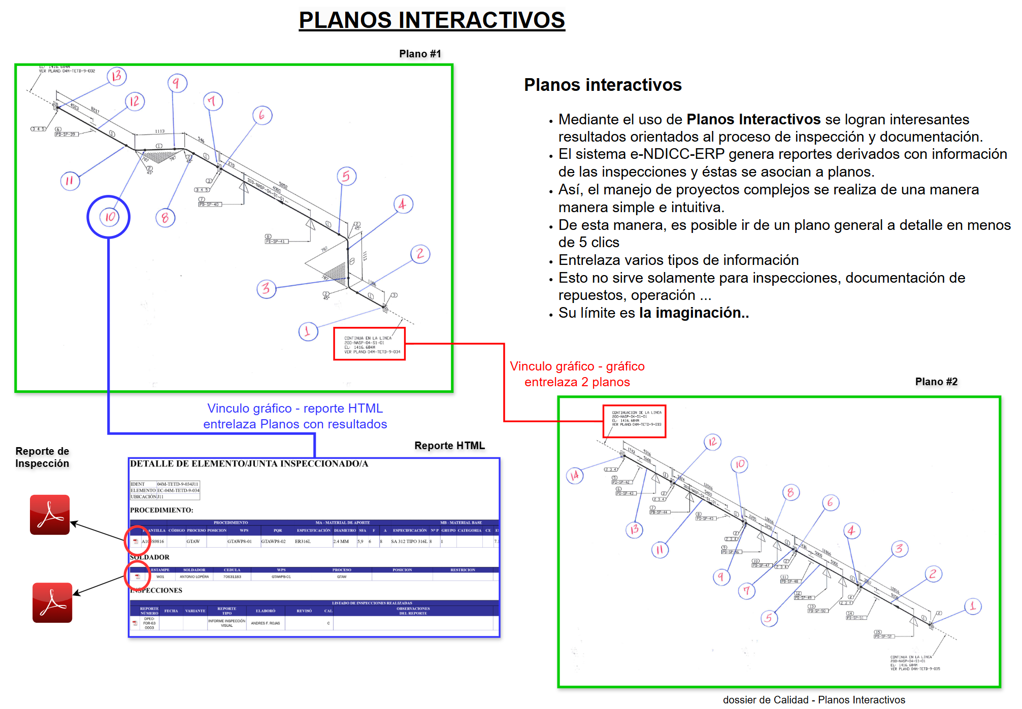 Importante mencionar que gran parte del trabajo se realiza en combinación con la información que prepara el sistema e-NDICC-ERP. El editor permite crear unas marcas en las imágenes, pero la sincronización de las imágenes e inspecciones lo realiza e-NDICC-ERP
