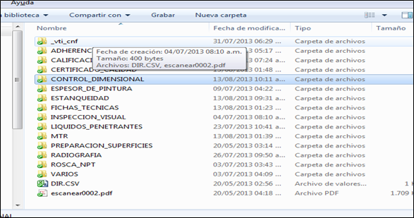 Fig 1328 Dossier de calidad en formato digital, se muestran archivos de inspecciones inspecciones [2].