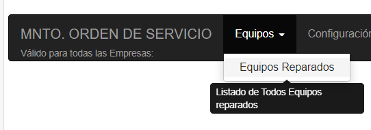 Equipos Reparados Muestra un listado de todos los Equipos reparados. Más detalles