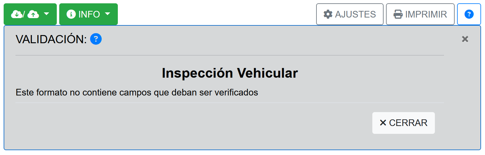 Fig 390 Extracto de pantalla VALIDACION con detalle de Información del formulario. Este formulario no contiene validación.