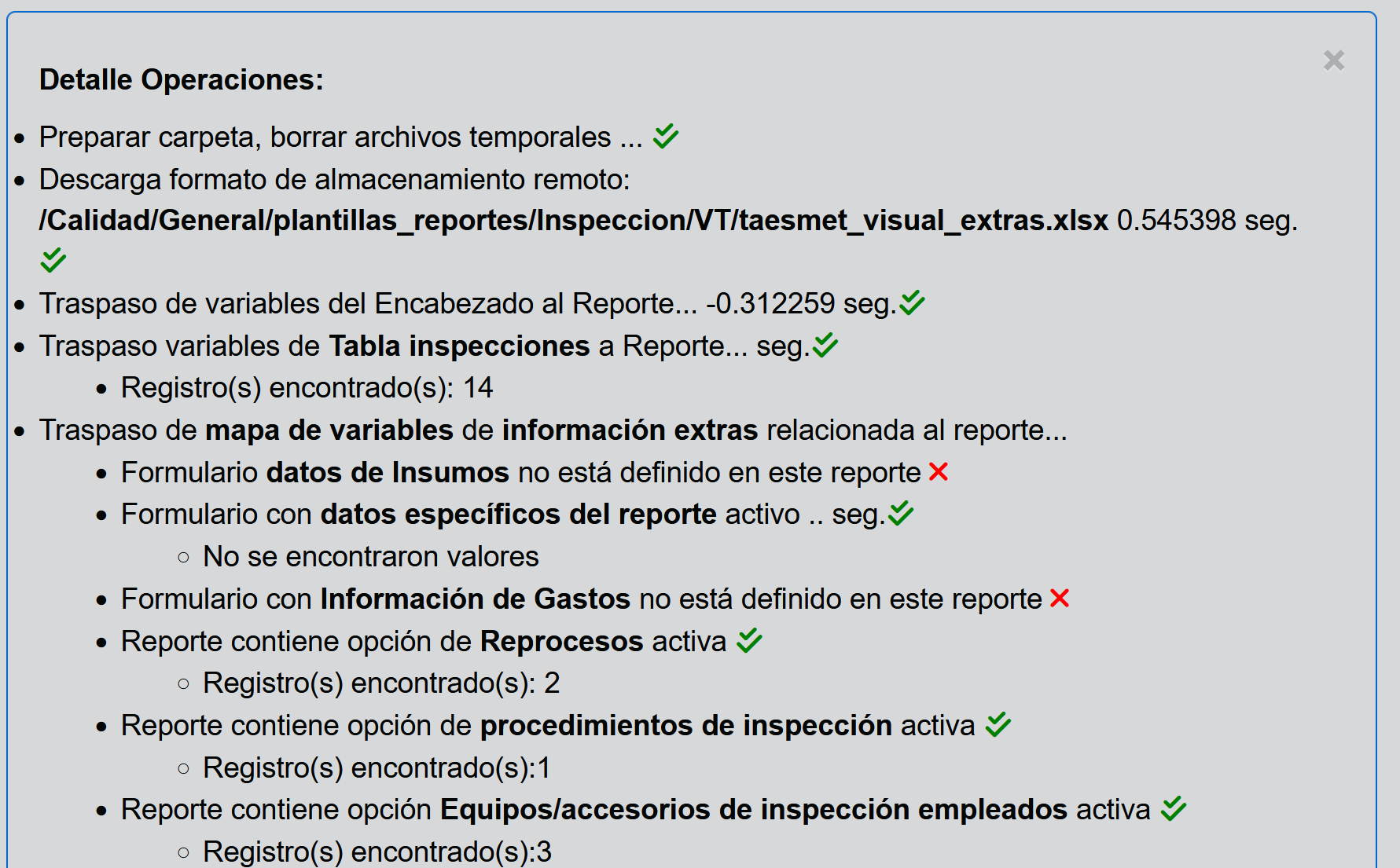 Fig 443 Extracto de pantalla de generación de reportes con Detalle de Visualización de variables Inactiva.