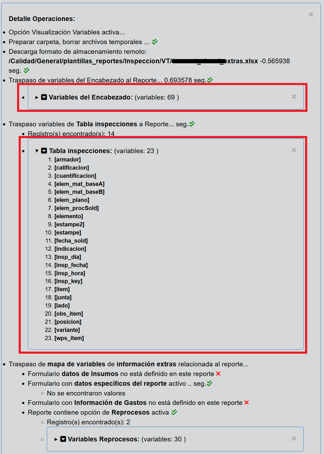 De la imagen anterior se aprecia 2 recuadros en color rojo, el primero no está extendido el listado de variables, mientras que en el segundo si. En el segundo se pueden visualizar todas las variables empleadas para ese ítem.