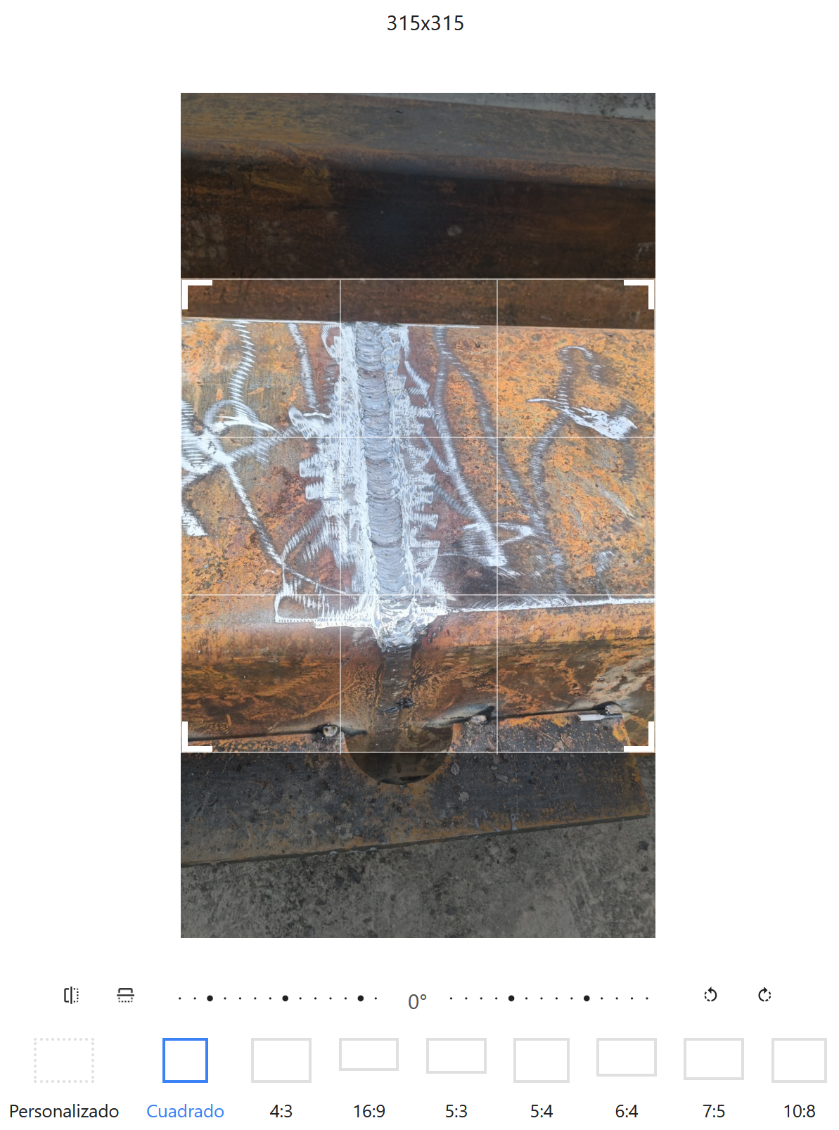 Esta opción permite realizar transformaciones a la imagen, permite realizar operaciones de recorte, volteo, rotación y enderezamiento. El usuario puede seleccionar entre varios ajustes preestablecidos de relación de aspecto de recorte (16:9, 1:1, Facebook, cabecera de Twitter, etc.).