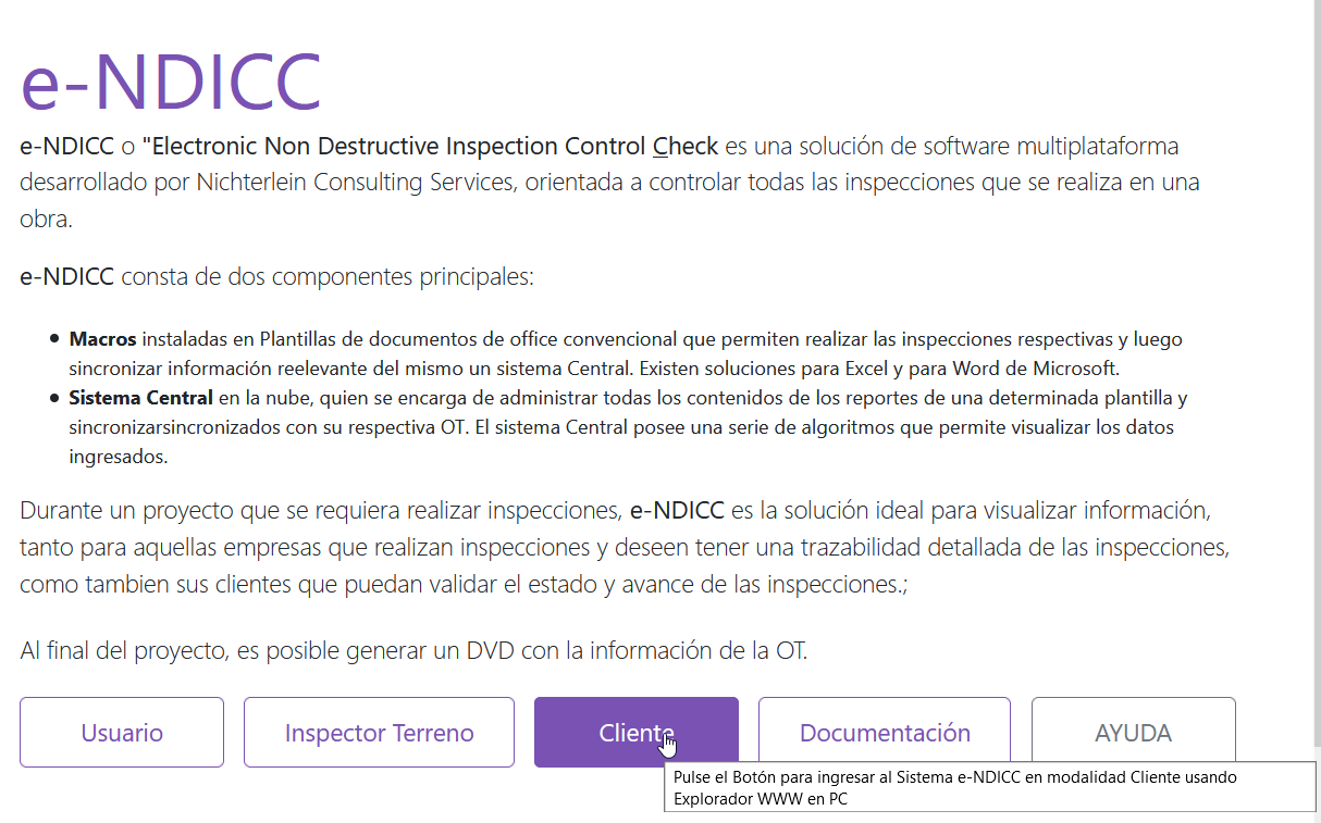 •INSPECTOR Permite acceso al sistema en modalidad USUARIO empleando dispositivos móviles, especialmente orientado a INSPECTORES EN TERRENO empleando dispositivos móviles, que tienen pantalla táctil y de menor tamaño. ver Ingreso Usuarios Dispositivos móviles