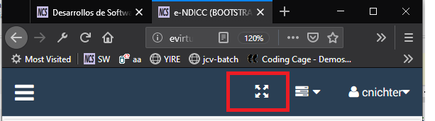 Esta opción permite que la información en la pantalla sea mostrada abarcando toda la pantalla del sistema. Para tal efecto se oculta la dirección URL