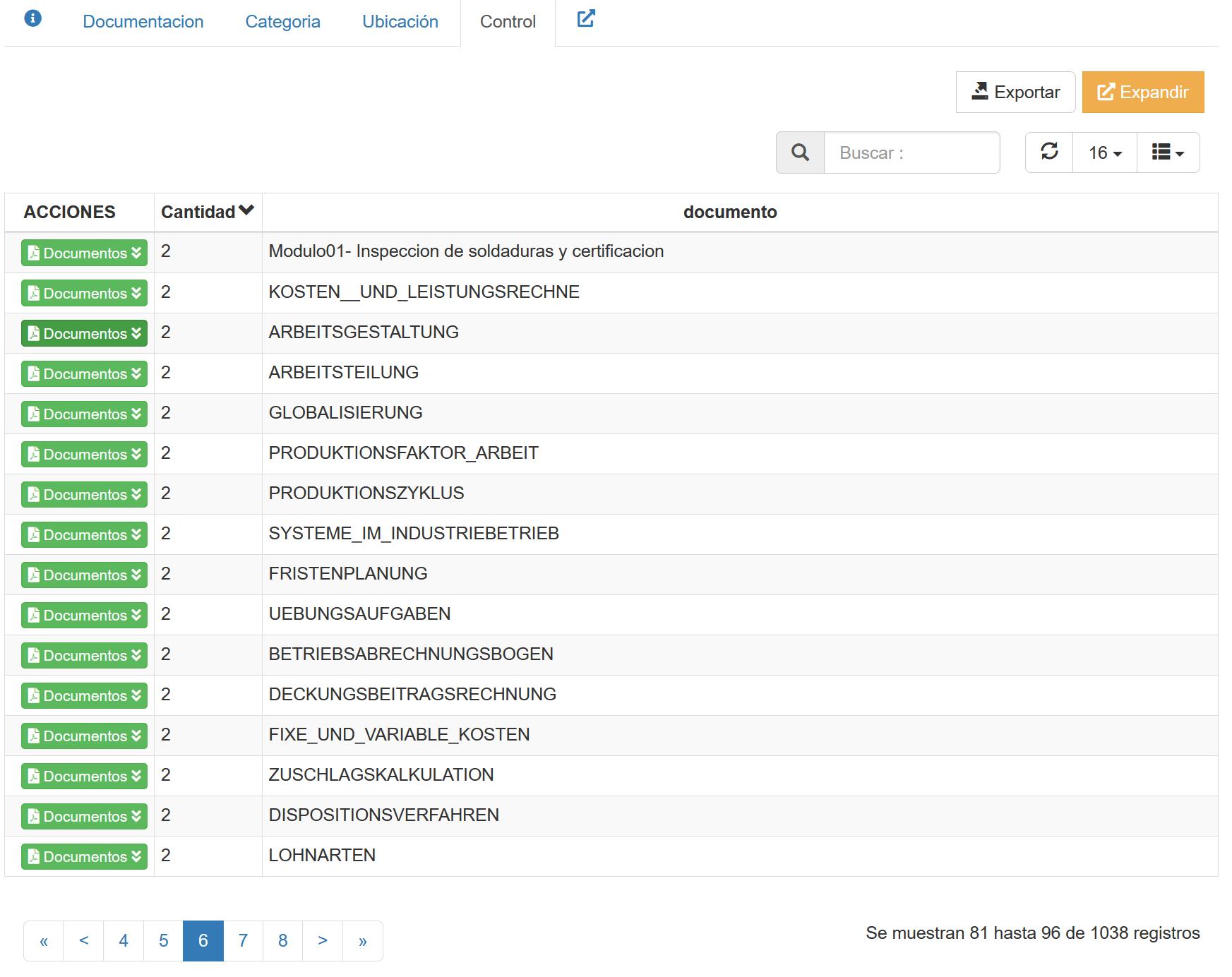 Fig 717 Extracto de pantalla, con listado de Documentos repetidos que están registrados en el sistema.