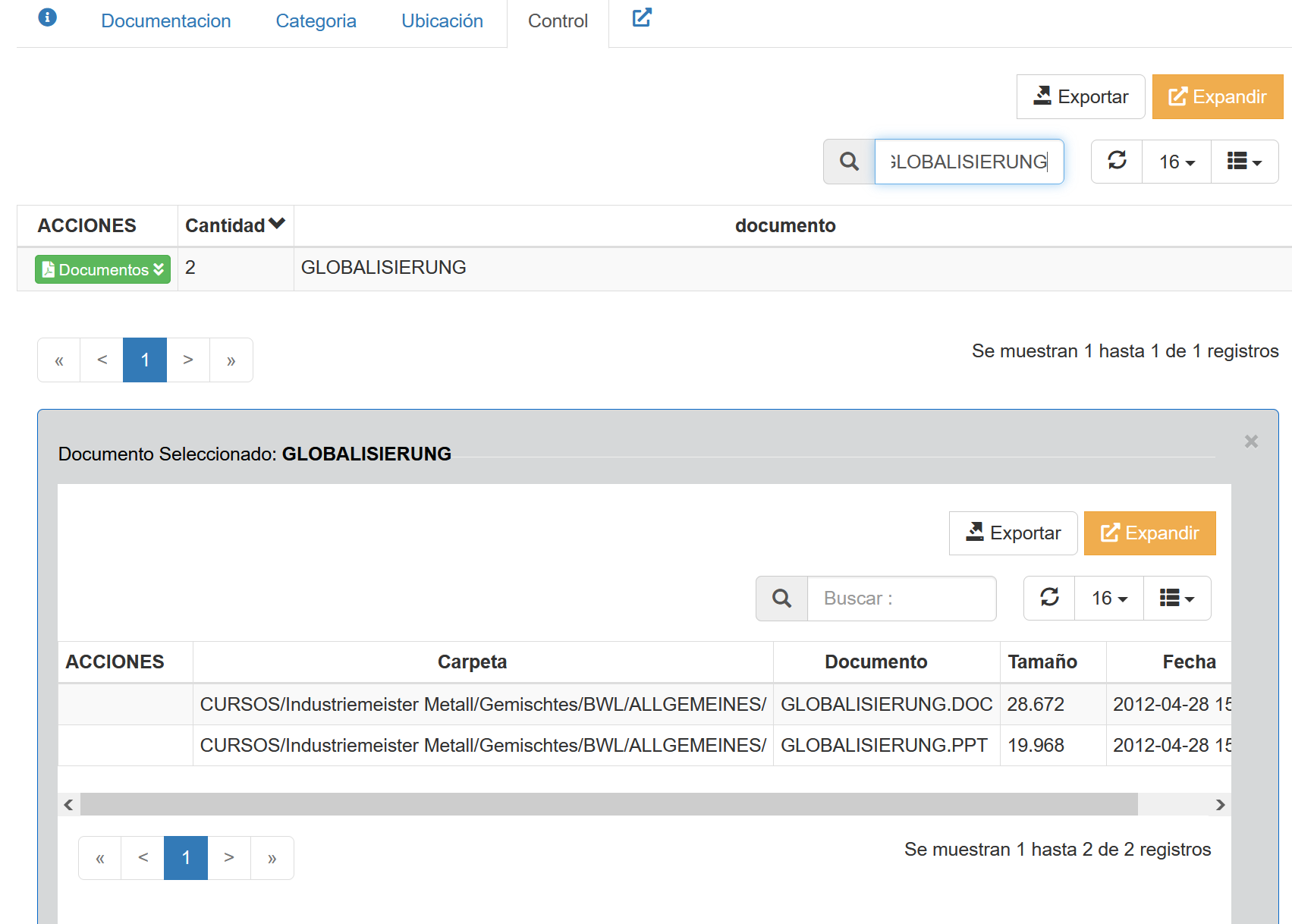 En este caso es posible apreciar que el concepto "GLOBALISIERUNG" se repite 2 veces porque existe en 2 formatos distintos.