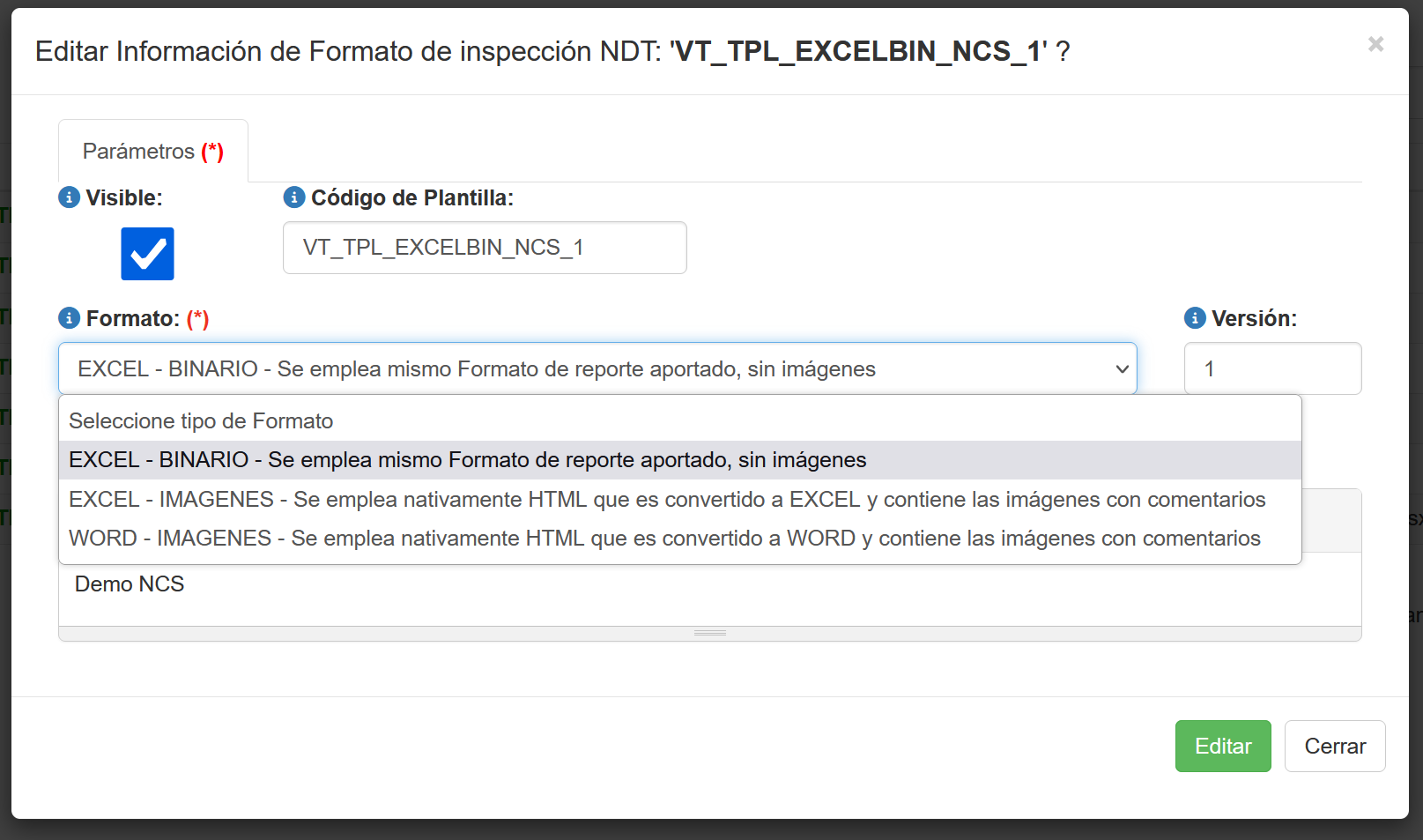 Reportes Personalizados /Tipos de Reportes/Formatos Plantilla/Pestaña Descripción