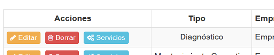 El botón SERVICIO, presente en cada ítem de la tabla de datos lo remite a uno al servicio realizado. Esto implica que se presentará una nueva vista con el detalle de éste SERVICIO.