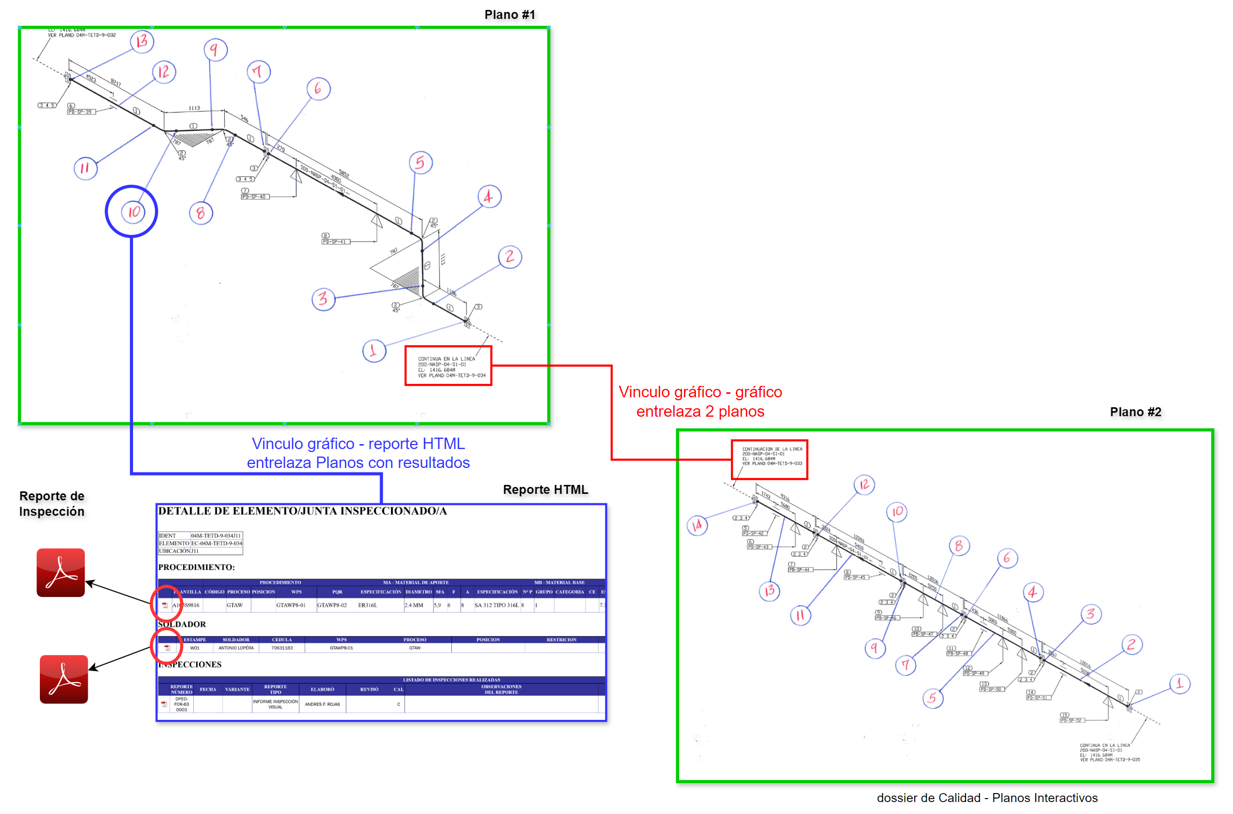 En este caso, para inspecciones de spool esto, es de gran utilidad ya que permite con muy pocos clics llegar al detalle de inspecciones desde un plano. Por lo que mostrar resultados de inspecciones usando planos interactivos representan una serie de ventrajas.