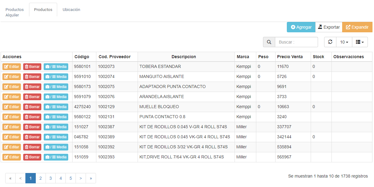 Fig 605 Extracto de Pantalla con listado de Productos (Maestro de Productos).