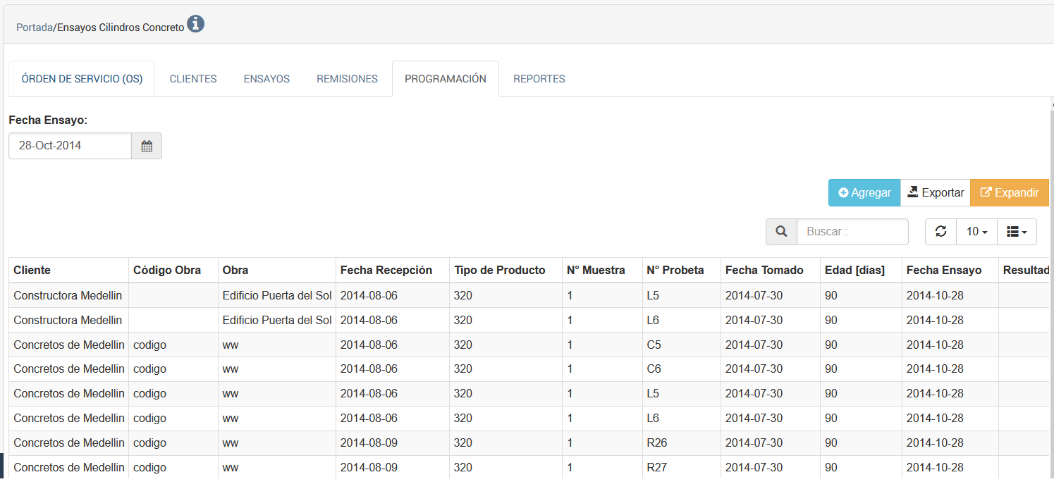Portada / Ensayos Cilindros Concreto/ Programación