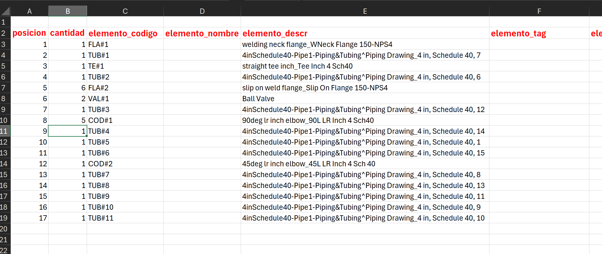 Ingreso tipo Batch de todos los elementos del proyeto usando un EXCEL
