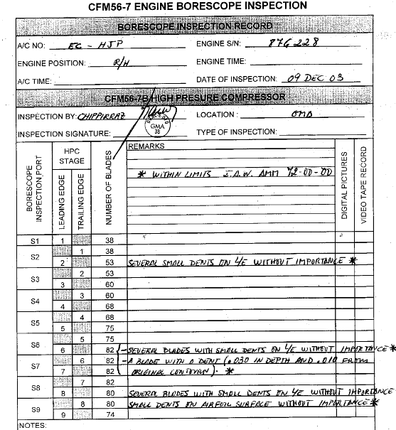 Fig 1083 Detalle de reporte de boroscopía de un motor de aviación [1]