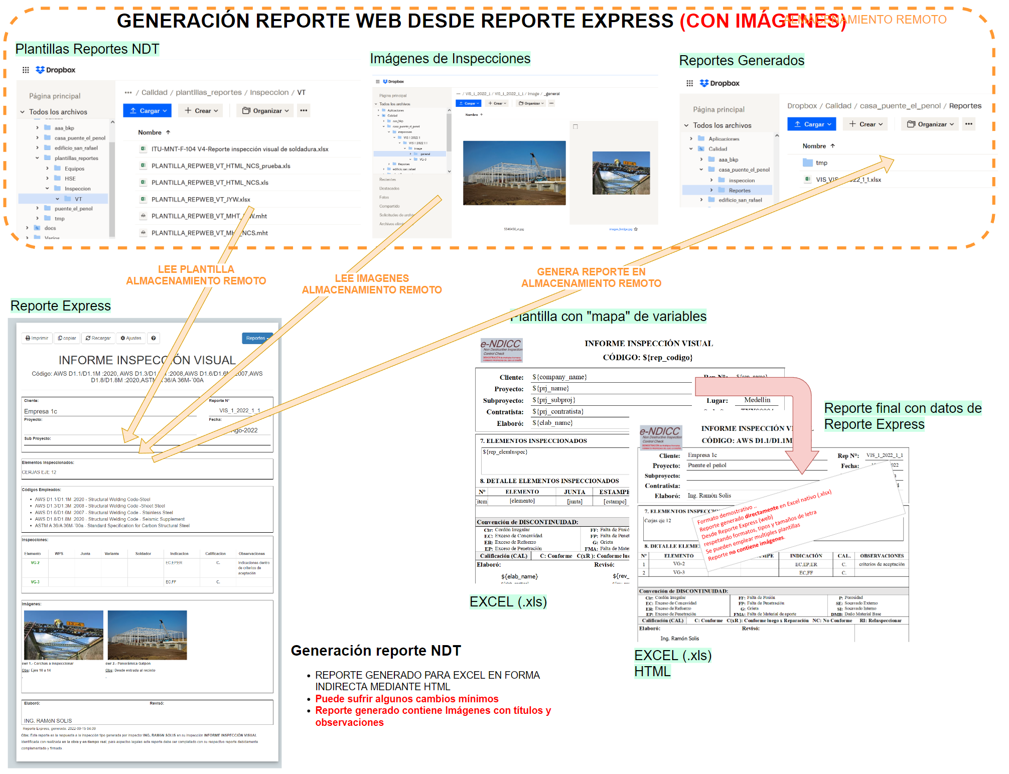 Esta opción permite generar un reporte que puede ser leido en EXCEL (se emplea un formato intermedio que permite agregar y manipular imágenes, tal como se muestra en la siguiente imagen