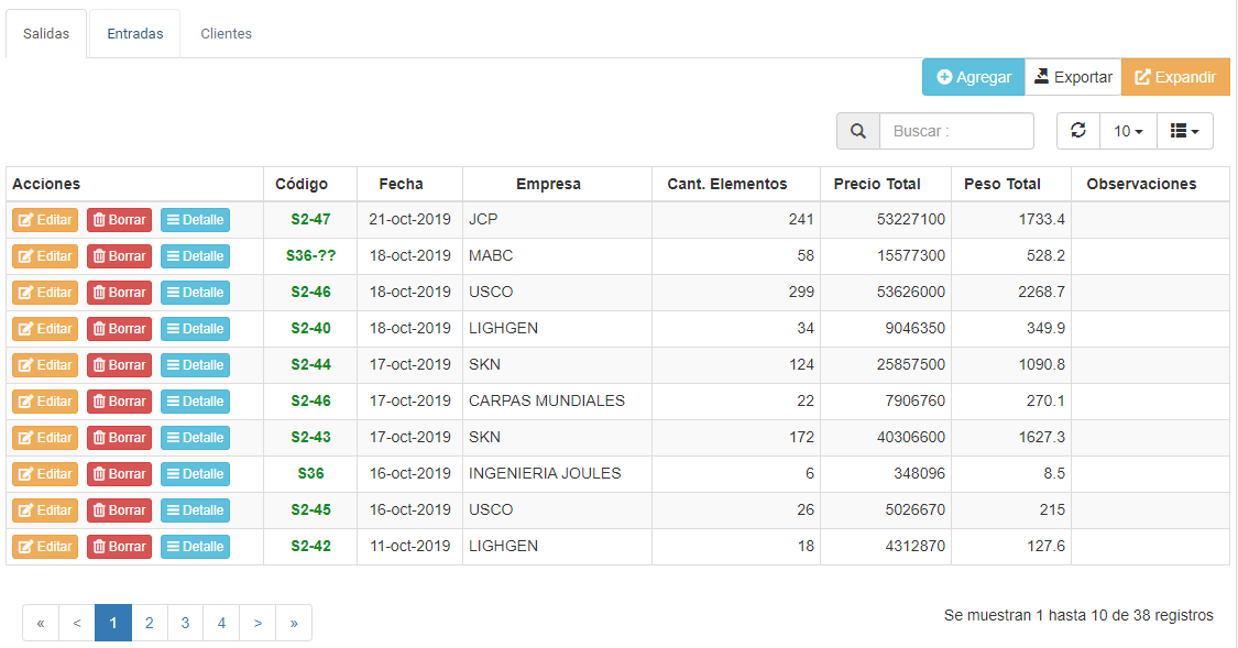 Borrar Borrar la movimientos de Salida ya registrada (ver observación más abajo ya que implica borrado de otros datos anexos)