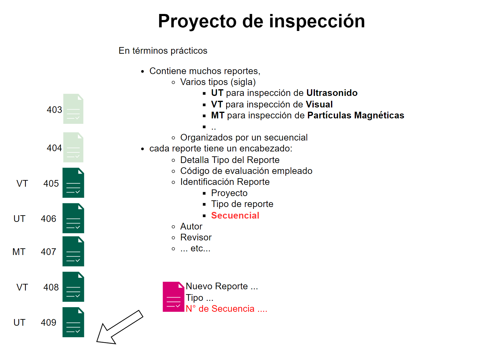 Fig 292 Esquema de proceso de añadir un nuevo reporte en un proyecto de inspección