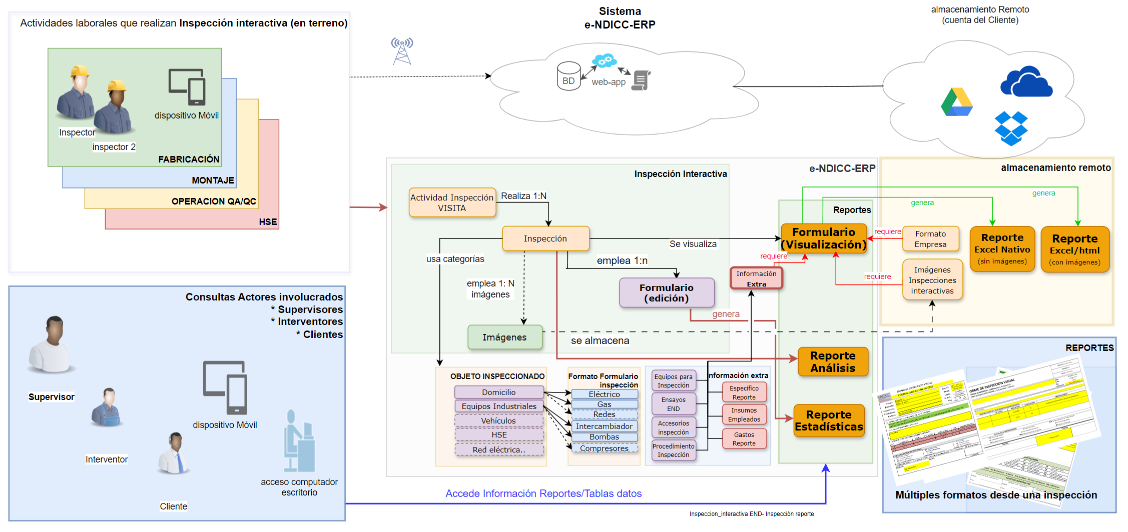 Fig 1377 Esquema de interacción en Sistema e-NDICC-ERP para un determinado proyecto de inspección del Tipo Formulario. Desde Inspección en linea hasta reporte generado