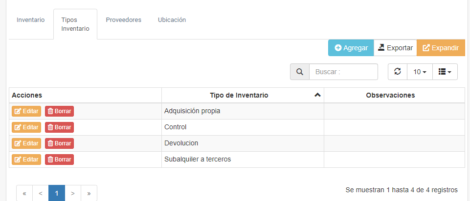 Fig 635 Extracto de Pantalla mostrando una tabla de datos con los tipos de inventario