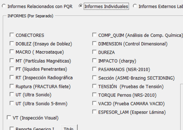 Fig 894 Listado de "algunos" tipos de reporte asociados a familia de Inspección Acero