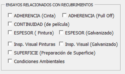 Fig 896 Extracto de opciones de tipos de informes en plantilla Excel para familia de inspección "recubrimientos"