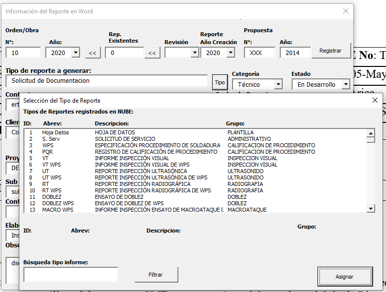 Mediante plantillas con programación se ha logrado que tanto Hojas de Cálculo (MS EXCEL) , como procesadores de Texto (MS WORD). Generen informes que posean la misma codificación de los tipos definidos en el servidor, asegurando que no sea un archivo sino un archivo de que contiene un tipo de informe.
