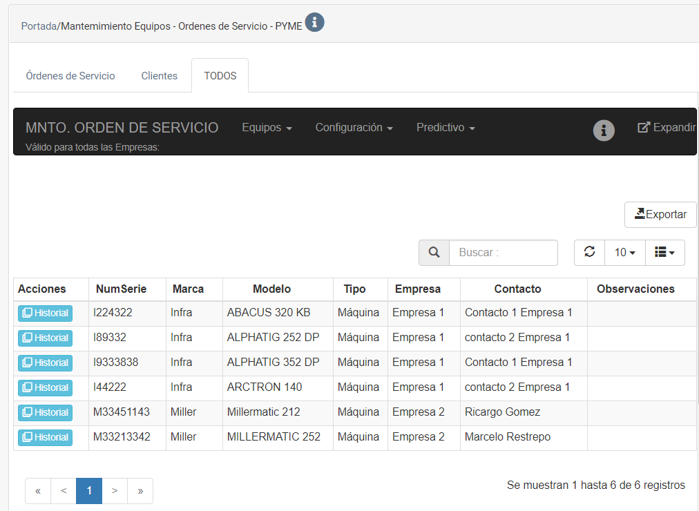 e-MMCC/ Mantenimiento de Equipos/ Orden de Servicio Pyme/ Pestaña Clientes / Ordenes Servicio /Opción Equipos/ Equipos Reparados