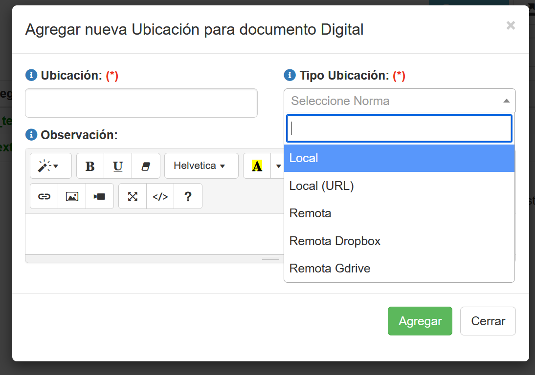 Sistema e-NDICC/Documentación digital/manejo de Documentación/Ubicación Documentación