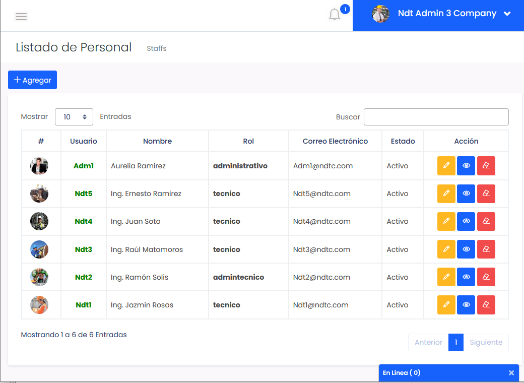 Sistema e-NDICC-ERP/Usuarios del Sistema/Usuarios activos o personal de empresa