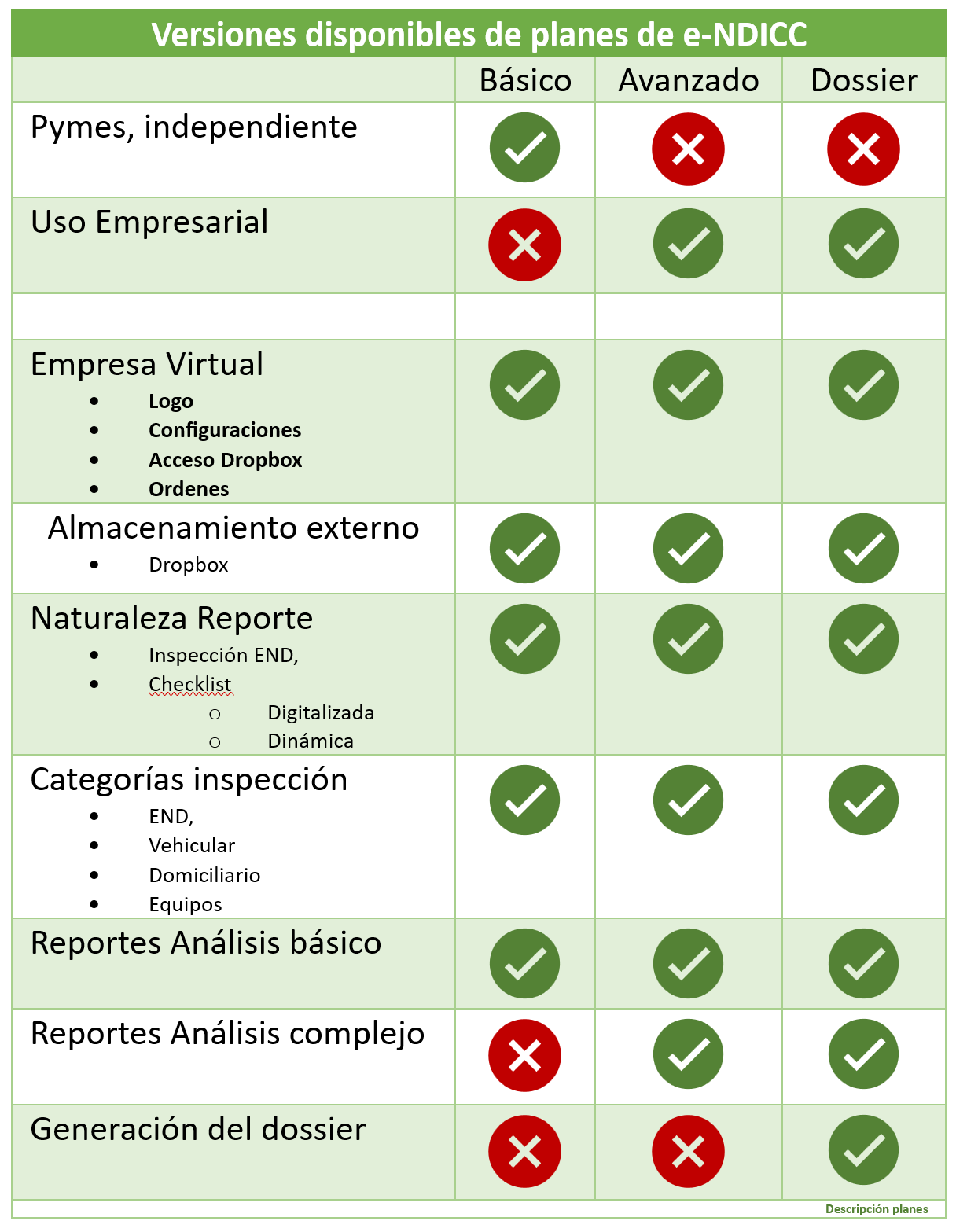 El sistema e-NDICC, se acuerdo a la complejidad de las funciones y uso, ofrece las siguientes variantes de membresía.