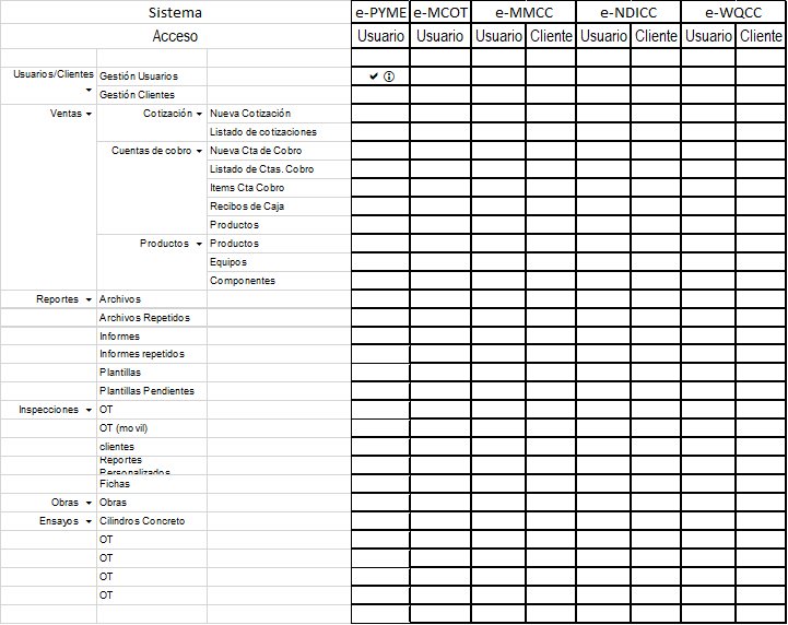 •Menú Sistemas Empresas Virtuales (clientes) Estructura de Menú que disponen los clientes para algunos sistemas. En general es un menú más limitado en donde el usuario generalmente puede visualizar, pero no Modificiar, la información que le corresponde. También hay opciones para que descargue a su gusto la información.